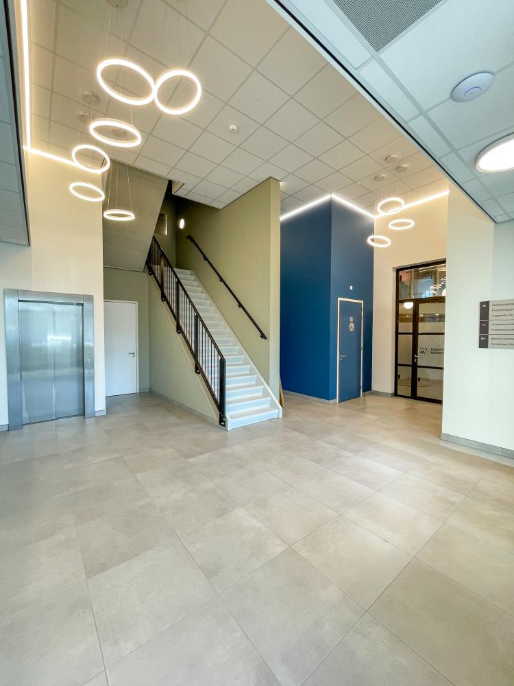Het interieur kenmerkt zich door een heldere indeling en een eigentijdse uitstraling waarbij gebruikersgemak en een gastvrije sfeer centraal staan. Voor de huisartsen- en tandartspraktijk is gekozen voor een inrichting die rust en professionaliteit uitstraalt met zorgvuldig gekozen materialen en kleuren die aansluiten op de rest van het centrum. Slimme routing en ergonomisch ingerichte werkplekken dragen bij aan een efficiënte praktijk, waar de algemene ruimtes juist zijn vormgegeven met een warm en uitnodigend karakter. Zo ontstaat een omgeving waarin patiënten zich direct welkom en op hun gemak voelen.