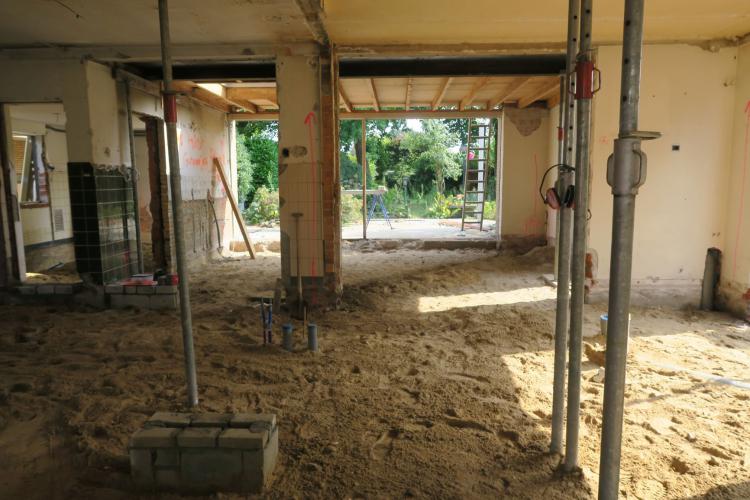 In Schijndel zijn de verbouwingswerkzaamheden voor het moderniseren van een bestaande woning gestart. Na de woning eerst volledig gestript te hebben zijn we inmiddels al weer toe aan het storten van de nieuwe beganegrondvloer. Op naar een mooi eindresultaat.